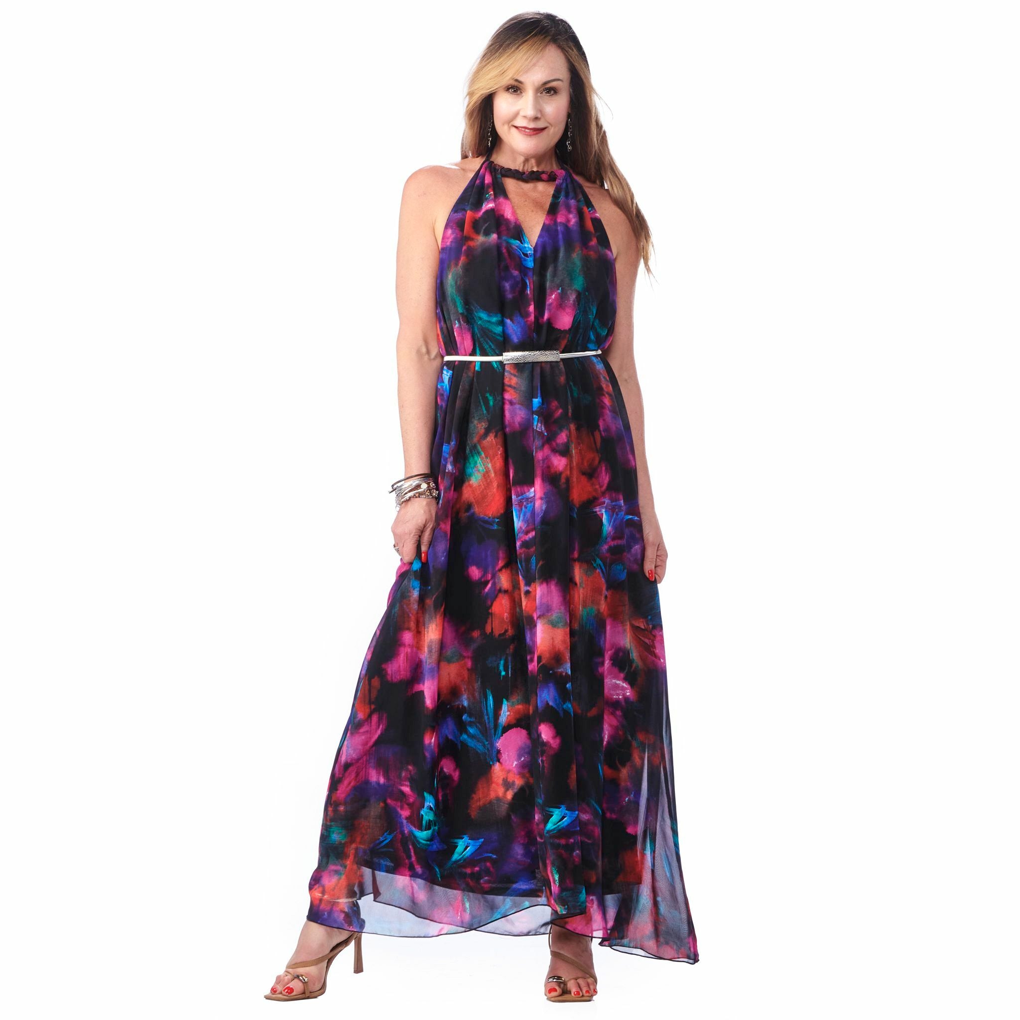 Introducing the Chiffon Halter Dress, a Boho Chic masterpiece that redefines elegance in simplicity. Crafted from 100% polyester, this dress promises airy comfort and effortless grace, perfect for any occasion. Designed and manufactured in Canada, it features a delicate halter neckline that flatters your shoulders and a flowing silhouette that dances with every breeze. Whether you're attending a sun-drenched garden party or a charming beach wedding, this dress is your ticket to enchanting style.