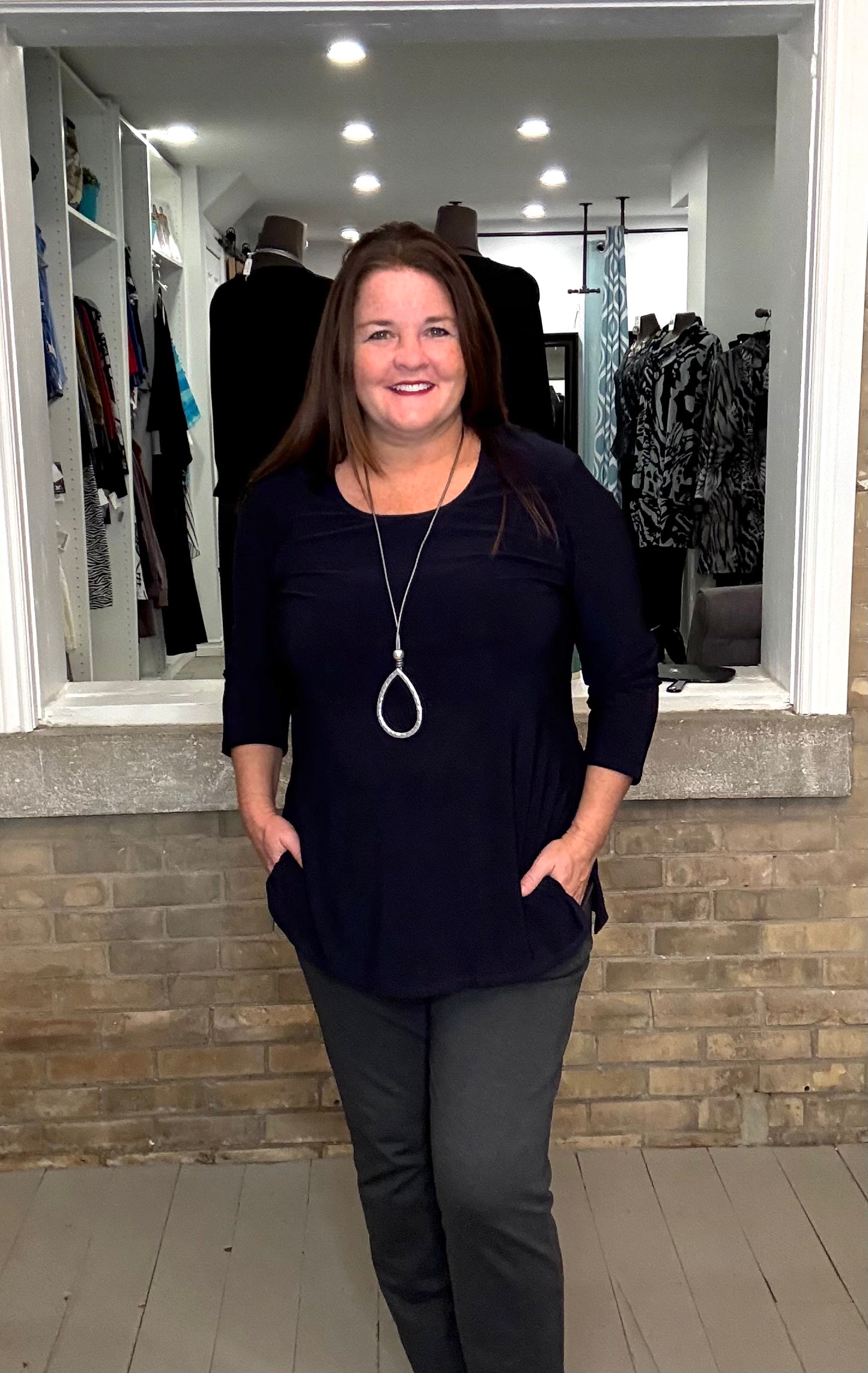 A modern twist on this eye-catching design. This top has a flattering scoop neck and asymmetrical ruffle hemline which adds texture and flow with every movement. Pair this piece with leggings or skinny jeans, or our ITY palazzo pants.