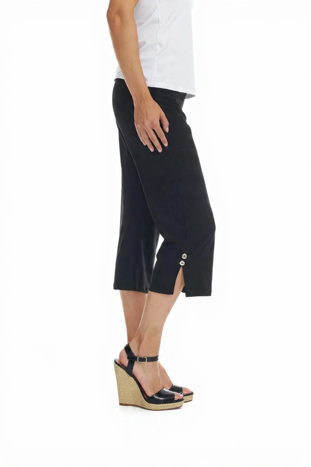 Capris with Side-Split Detailing - This design features a slight slit side-seam for leisurely movement, and button detailing for a unique finish.